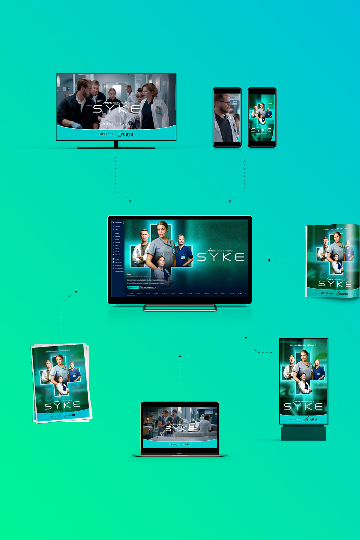 Syke kauden 22 Key Artin suunnittelu ja toteutus eri kohtaamispintoihin. Liikkuvan kuvan toteutukset sarjan materiaalista Jarno Rinnekangas.